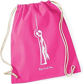 Berlin Gymsack Bedruckt/Rucksack/Jutesack/Tasche/Sportbeutel/Turnbeutel mit Fernsehturm und Berlinelfe von 3 Elfen - Statement Hipster Jute Bag Beutel aus Baumwolle - pink