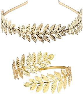 Minkissy griechisches Stirnband Armmanschette Brautschmuck-Set römisches Blatt Zweig Krone goldenes Armband für Hochzeit, Abschlussball, Party, 2 Stück