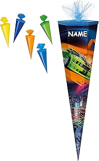 alles-meine.de GmbH passende 3D LED Licht & Leucht - Schleife - für Set _ Schultüte + 5 kleine Zuckertüten - Auto - Rennauto / Sportwagen - 50 / 70 / 85 cm - incl. Name - Zuckert..