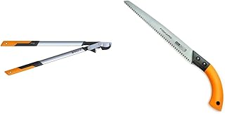 Fiskars PowerGear X Bypass-Getriebeastschere für frisches Holz, Länge: 80 cm, Schwarz/Orange, LX98-L & Handsäge für frisches Holz, Mit feststehendem Blatt, Sägeblattlänge: 33 cm, Schwarz/Orange, SW84